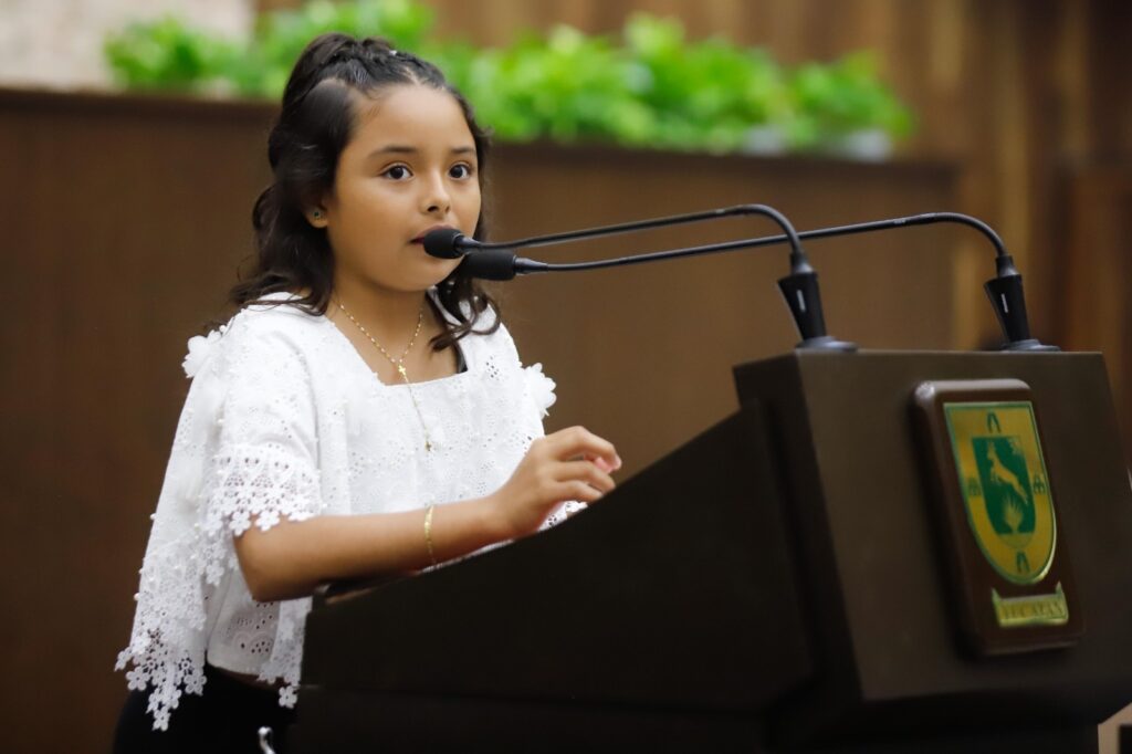 “A pesar de lo que representa hoy nuestra lengua y cultura maya, estamos pasando por una fragilidad, ya que por temas de discriminación se está dejando de transmitir. Como niña diputada solicito al gobierno estatal abrir espacios en los ayuntamientos para talleres de práctica y enseñanza de la lengua maya, para que juntos, sociedad y gobierno, salvemos nuestra lengua materna”.