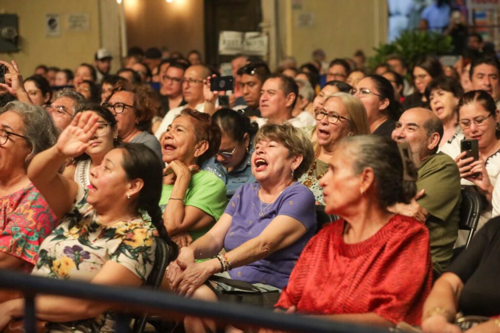 Conocidos temas del ícono yucateco como “Somos novios”, “Mia”, “Esta tarde vi llover”, “Adoro”, “No”, “Contigo aprendí”, “Cuando estoy contigo”, “Señor amor”, “Como yo te amé”, “No sé tú”, que corearon los espectadores.
