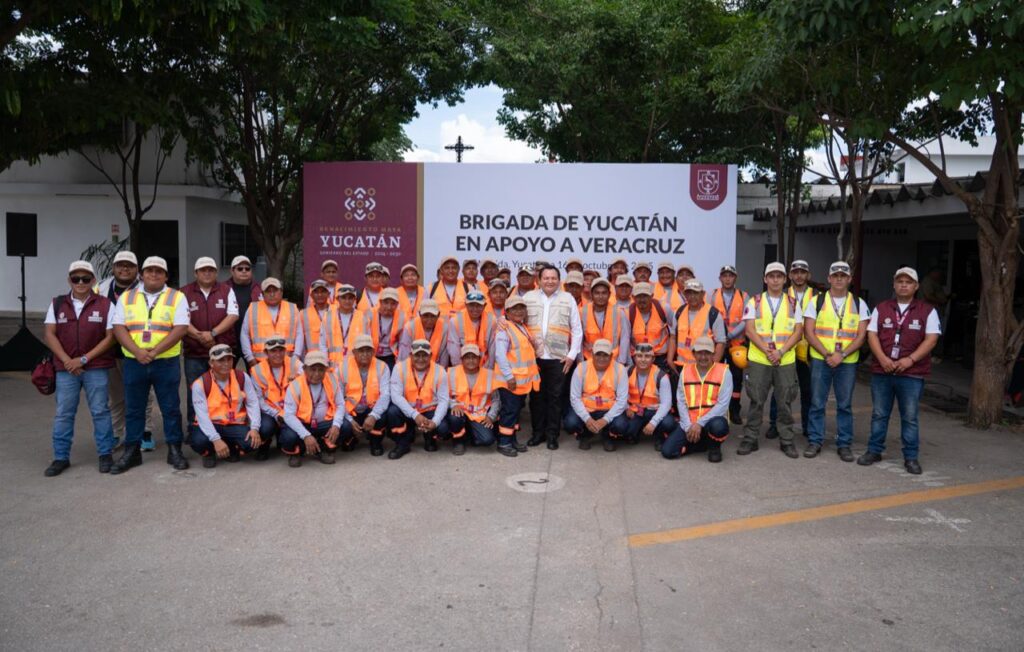 “Respondemos al llamado de nuestra Presidenta de México, la doctora Claudia Sheinbaum Pardo, para ser empáticos y solidarios con el dolor que están viviendo nuestros compatriotas. Hoy despedimos con orgullo y emoción a esta valiente brigada de mujeres y hombres que llevarán el corazón de Yucatán hasta Veracruz”, señaló el mandatario estatal.