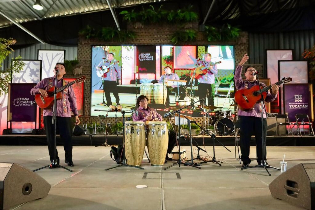 El foro cultural del Palacio de los Deportes ha vibrado con presentaciones de grandes voces de la escena yucateca, trova, comedia regional y la música de agrupaciones como la Orquesta Típica Yukalpetén, que llenan de orgullo y color cada jornada.