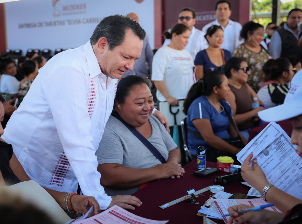 En compañía de la presidenta honoraria del DIF Yucatán, Mtra. Wendy Méndez Naal, el Gobernador informó que con las tarjetas “Elvia Carrillo Puerto”, que ya comenzaron a entregarse, no habrá intermediarios, por lo que las beneficiarias podrán acceder directamente a los recursos en cajeros automáticos o ventanillas del Banco del Bienestar, con total independencia y autonomía.