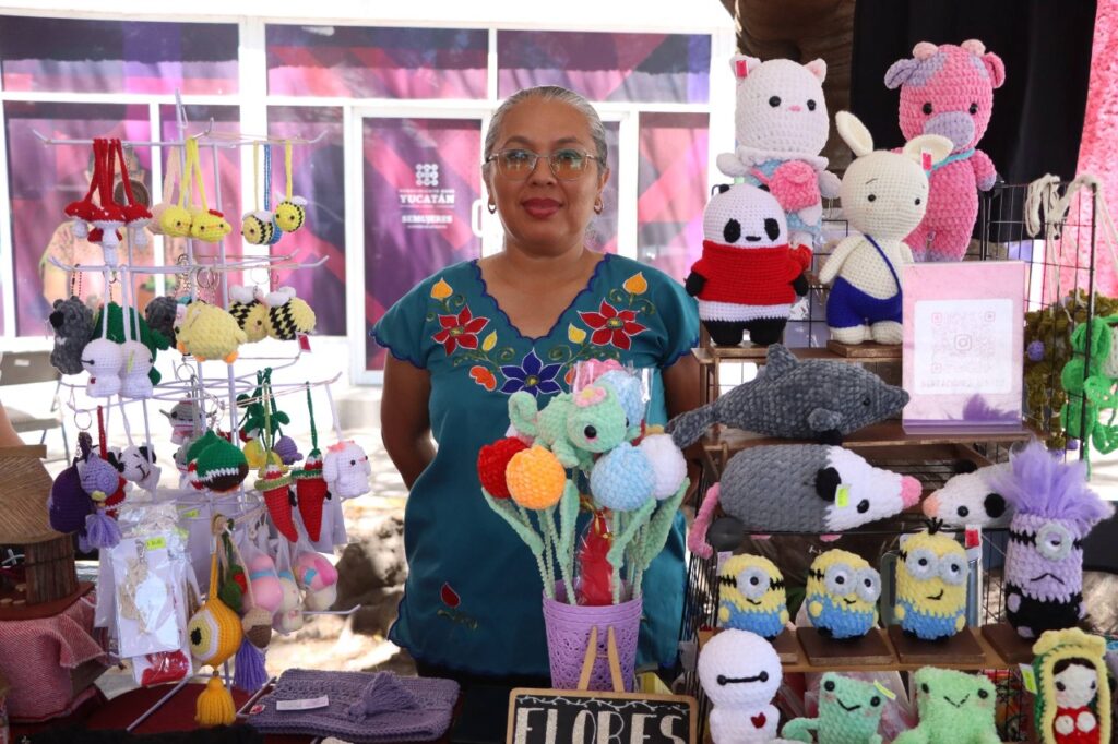 Otro caso es el de Georgina Herrera, de Kanasín, quien desde hace ocho años se dedica a la venta de flores tejidas en crochet y macramé, actividad que inició tras quedarse sin empleo y que se convirtió en una oportunidad para salir adelante.