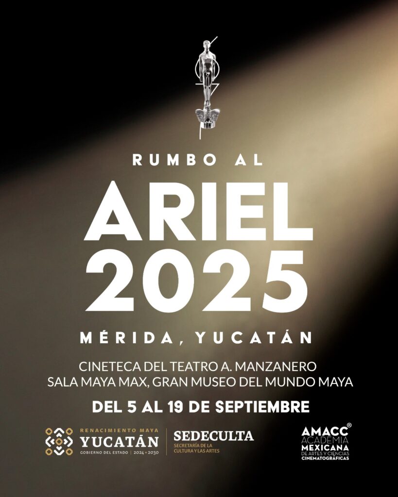 La muestra “Rumbo al Ariel 2025” llega a Yucatán con una selección de largometrajes de ficción y documentales nominados a esta distinción, los cuales serán exhibidos de manera gratuita en la Sala Mayamax del Gran Museo del Mundo Maya y en la Cineteca del teatro Armando Manzanero, de la Secretaría de la Cultura y las Artes (Sedeculta).
